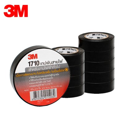 เทปพันสายไฟ 3M 1710 (1แถว/10ม้วน) หน้ากว้าง 3/4 นิ้ว ความยาว 10 เมตร ความหนา 0.175 ของลิขสิทธิ์แท้ 100% ทนแรงดันไฟฟ้าได้ 600 โวลท์
