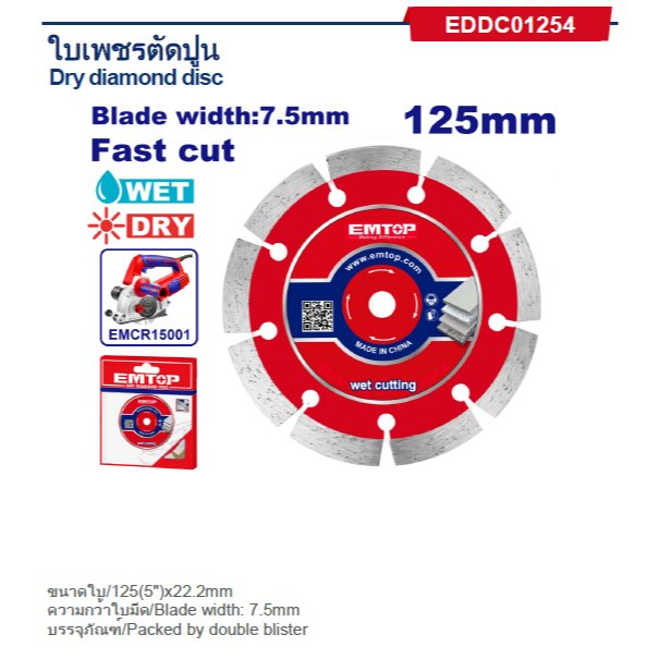 EMTOP รุ่น EDDC01254 ใบเพชรตัดปูน ขนาด 5นิ้ว ใบตัดปูน ใบตัดหิน ใบตัดแห้ง ใบตัดเปียก ใบเลื่อย
